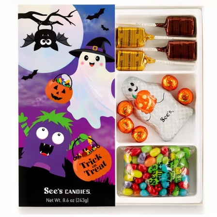 Happy Haunting Box 8.6oz/243g 愛嚇人的搗蛋鬼回來了! 裝滿了孩子們的最愛:美味棒棒糖、牛奶巧克力球、一隻南瓜幽靈,和一袋酸味雷根糖。 保存期限: (即期良品除外) 含寄出日至少30天,以包裝上標示為主 請密封放置於陰涼乾燥處,溫度不超過24度C為宜,夏天建議冷藏保存並盡速食用完畢