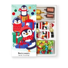 2025可愛登場 Playful Penguins Box 7.5oz/213g 期間限定。把企鵝們裝進聖誕襪吧! 裝滿各種濃郁牛奶巧克力、巧克力棒棒糖、焦糖奶油棒棒糖 還有微酸的青蘋果與櫻桃雷根糖。 保存期限: (即期良品除外) 含寄出日至少30天,以包裝上標示為主 請密封放置於陰涼乾燥處,避免日光直接照射